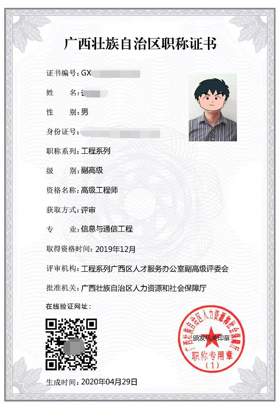廣西職稱評審證書樣本-全國通用